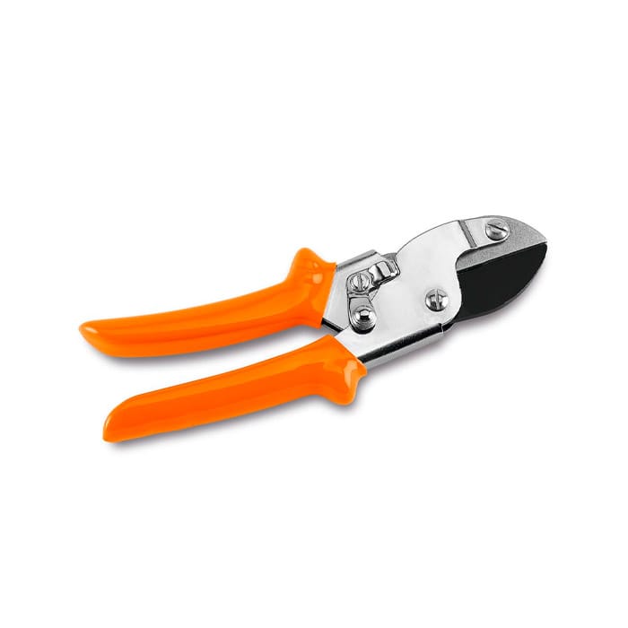 Las tijeras de podar de yunque STIHL PG 25 ofrecen un apoyo versátil para el mantenimiento del jardín, por ejemplo, cuando se limpia un jardín demasiado crecido. Al cortar con tijeras de podar de yunque, la hoja de corte toca directamente la cara del yunque. Gracias al mecanismo de tirar para cortar, puedes utilizar estas prácticas tijeras para cortar sin esfuerzo ramas de madera dura más gruesas y, especialmente, madera muerta de hasta un diámetro de 15 mm. Las tijeras de podar de yunque STIHL PG 25 miden 20 cm de largo y pesan 260 g. El mecanismo de bloqueo con práctico cierre con una sola mano se puede abrir fácilmente con el pulgar. Con las tijeras de podar de yunque STIHL PG 25 se pueden cortar incluso materiales como perfiles de plástico o mangueras. El cuerpo resistente a la corrosión de las tijeras de podar garantiza una larga vida útil, mientras que la hoja antiadherente y el yunque se pueden reemplazar si es necesario. Simplemente comuníquese con su concesionario local STIHL para obtener una hoja o un yunque de reemplazo.